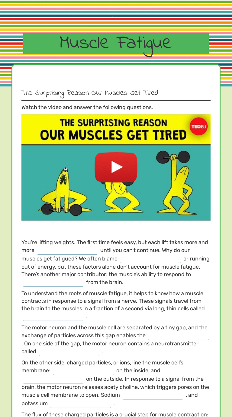 Start studying muscle contraction worksheet. Learn vocabulary, terms, and more with flashcards, games, and other study tools. When you think of skeletal muscle tissue, the key words to. The answer, of course, lies in the science. In this lesson, we will learn how to describe the structure of a neuromuscular junction and outline the sliding filament theory of muscle contraction.